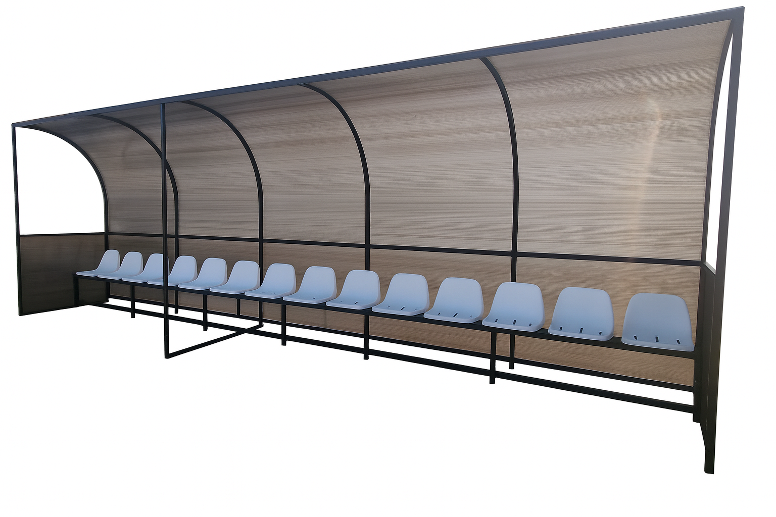 Completeaza dotarea oricarui teren de sport cu aceasta banca sportiva profesionala pentru rezerve si staff tehnic, destinata terenurilor de fotbal, baze sportive, scoli, academii si centre de antrenament. Cu o lungime de 3 metri, banca ofera 6 locuri confortabile, fiind conceputa special pentru a rezista la utilizare intensiva in conditii exterioare.