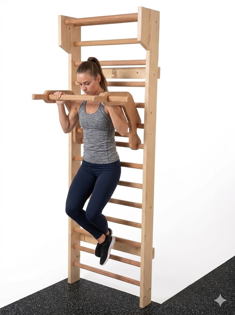 Alege bara pentru tractiuni compatibila cu spalier din lemn masiv pentru antrenamente eficiente acasa sau in sala. Cresti rapid nivelul exercitiilor si folosesti un accesoriu stabil, sigur si durabil.