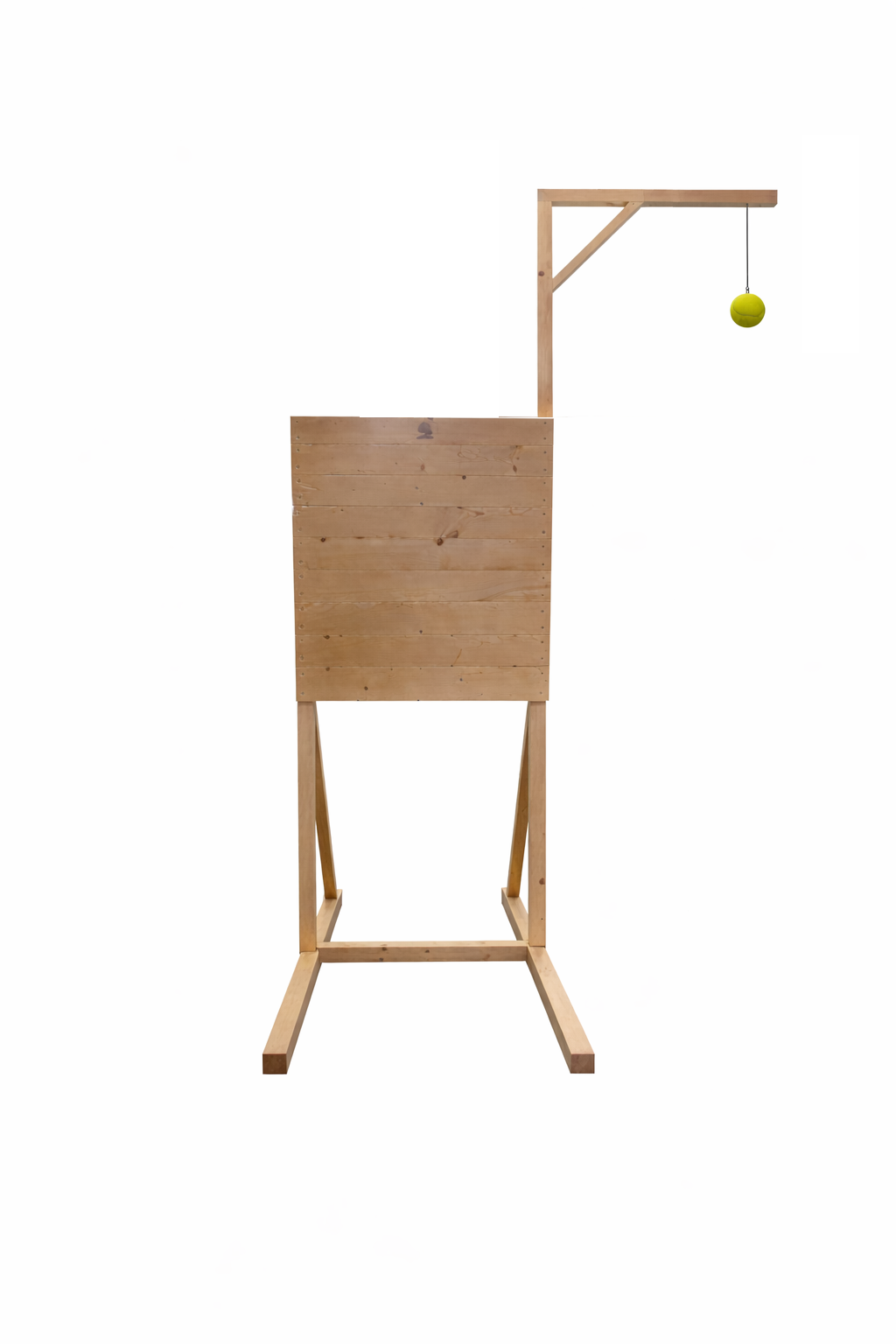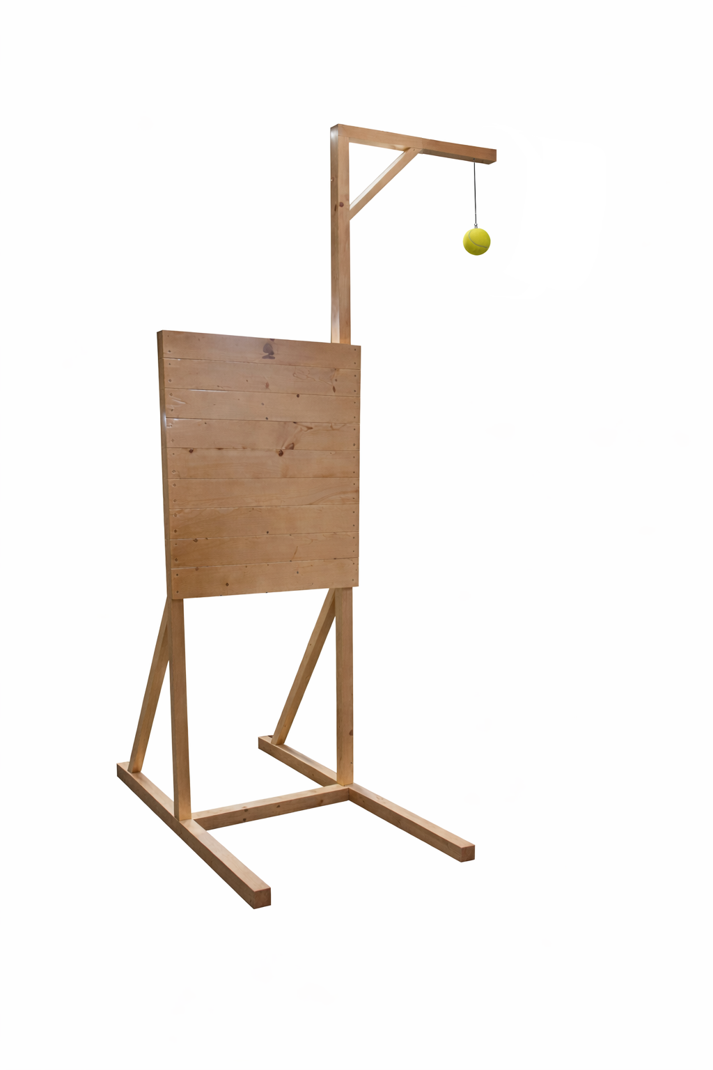 Stativul este realizat din lemn masiv de brad. Este lemn masiv, nu scandura subtire. Structura este solida si rezista la solicitari repetate, sarituri si utilizare zilnica.